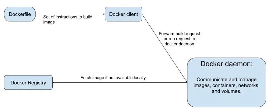 - Docker Daemon (dockerd): This is the component that listens for Docker API requests and manages Docker objects like images, containers, networks, and volumes.